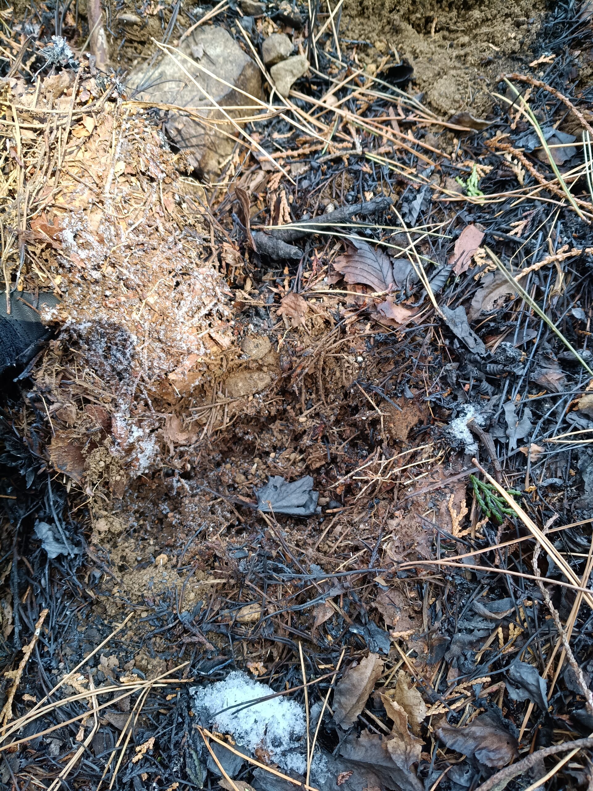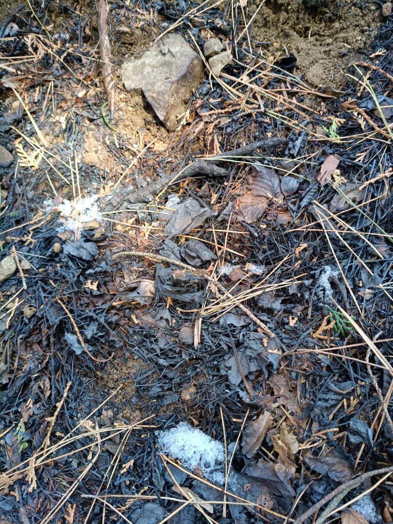 地表の落葉が焦げているのがわかります。
