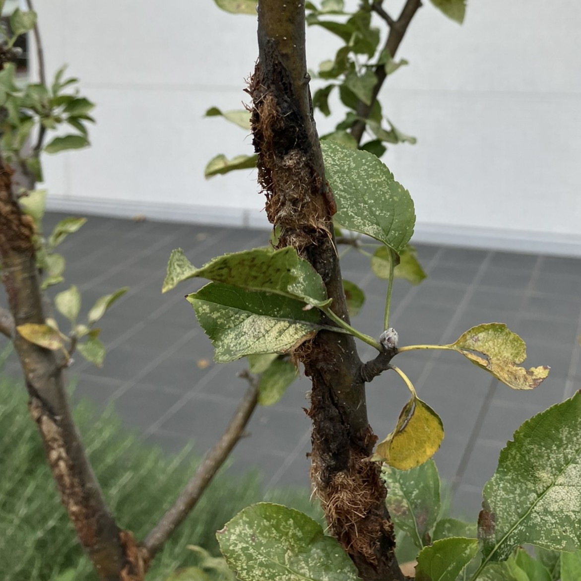 お客様の敷地内に植えられているヒメリンゴの木に何やら違和感を感じました。